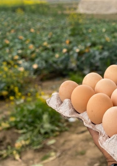Farm-fresh, free-range eggs from happy hens.